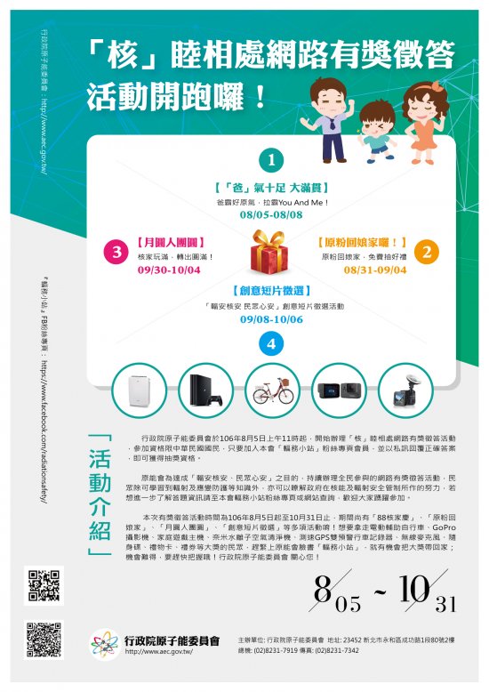 | 二、 | 活動網址如下:http://www.facebook.com/radiationsafety,請鼓勵師生及民眾踴躍參加,相關內容請參閱附件 |